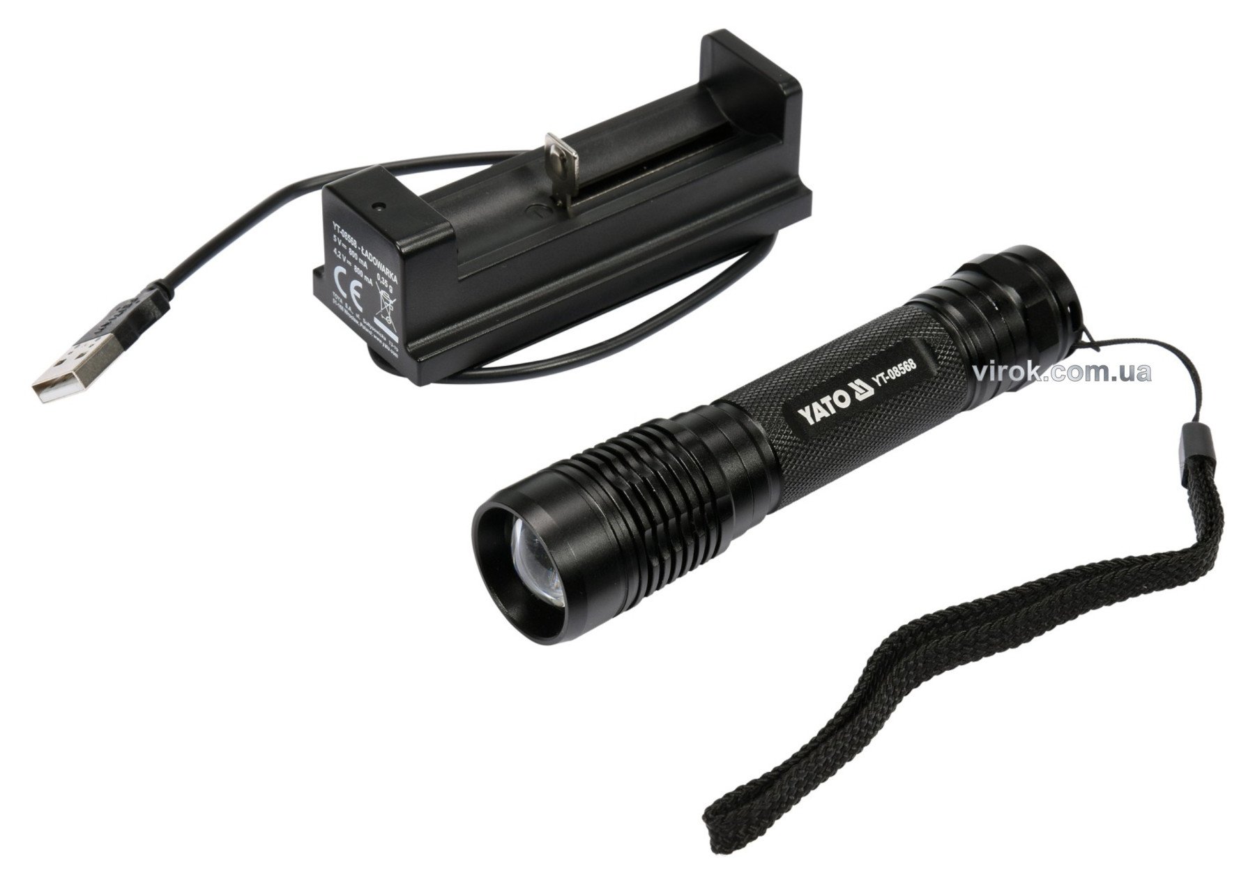 YATO Ліхтар світлодіодний (XPG3 CREE), акумулят. Li-Ion- 2.2A, Р= 6 Вт, Ф= 500 lm. Ø= 28 мм x 120 мм