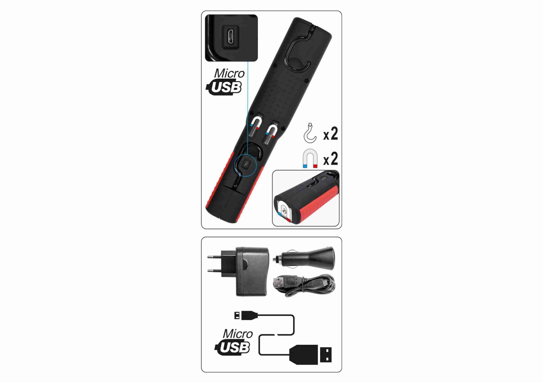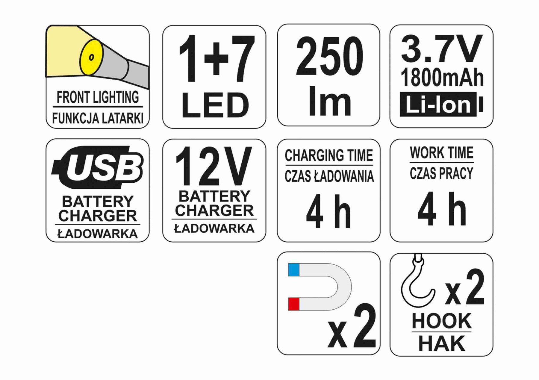 YATO Ліхтар переносний світлодіодний акумул. 3,7 В YATO з режимами 1+7, Ф= 250 lm | YT-08504