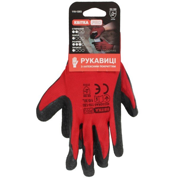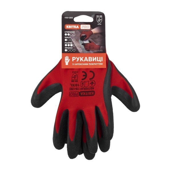 Стрейчеві рукавиці з латексним покриттям КВІТКА PRO Recodrag (110-1203-10-IND)