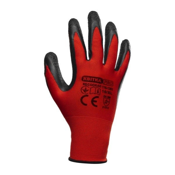 Стрейчеві рукавиці з латексним покриттям КВІТКА PRO Recodrag (12 пар) (110-1203-10)
