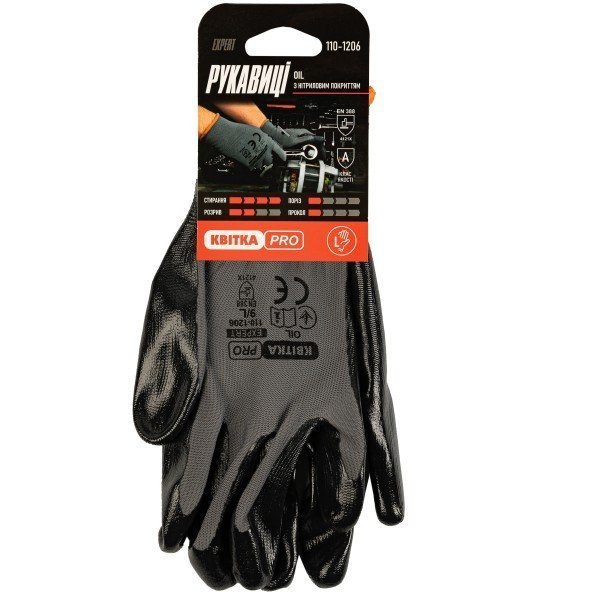 Рукавиці з нітриловим покриттям КВІТКА PRO (9" / L) (110-1206-09-IND)