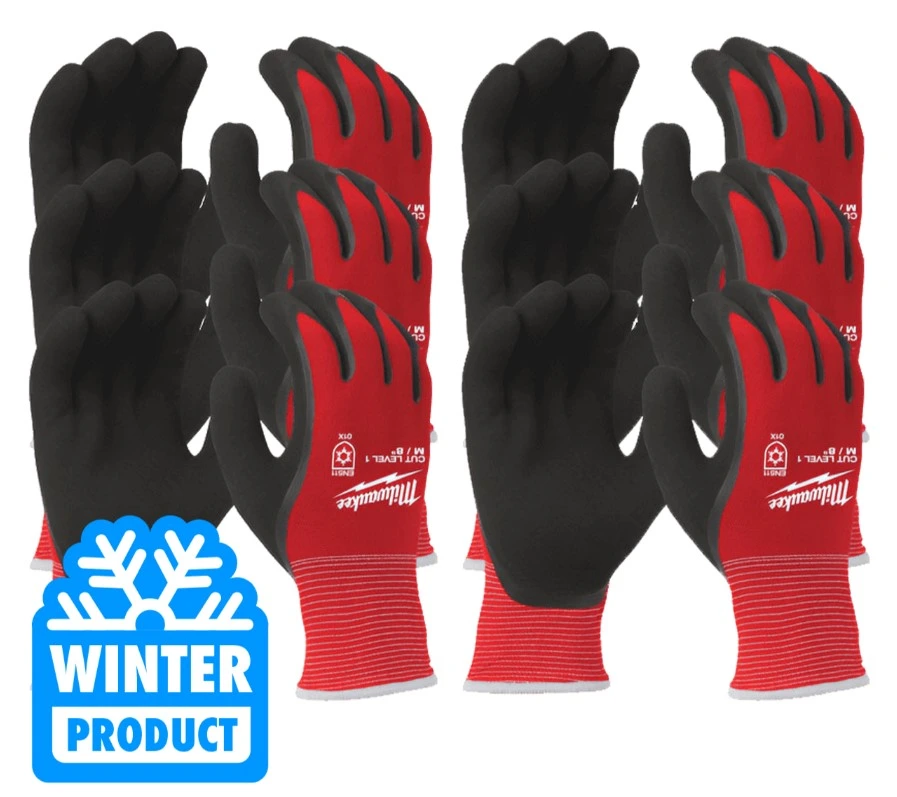 Рукавички з рівнем опору порізам 1, зимові, розмір XXL/11 (Багатоштучна упаковка - 12 пар) Тепла підкладка та трикотаж із подвійної нитки забезпечують тепло при роботі в холодних умовах, при цьому рукавички "дихають". Розроблені, щоб забезпечувати надійний захист та комфорт протягом усього дня, ідеальні для перенесення матеріалів та легких будівельних робіт. Захист долоні завдяки покриттю із нітрилу. Забезпечують точність під час роботи з дрібними деталями. SMARTSWIPE™ на долонях та кінчиках пальців - дозволяють користуватися пристроями з активними екранами (смартфони, планшети), не знімаючи рукавичок. Сертифіковані в Європі на опір порізам та стійкість до холоду: EN420, EN388:2016 (1141A), EN511 (01X). Комплект поставки: Рукавички зимові Milwaukee із захистом від порізів, рівень 1, розмір XXL/11 - 12 пар Розмір XXL/11