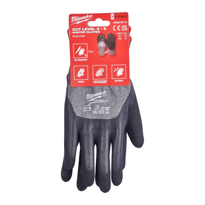 Рукавички з рівнем опору порізам 5, зимові, розмір M/8 (Багатоштучна упаковка - 12 пар) Утеплювач та подвійний акриловий шар зігрівають руку під час роботи в холодних умовах. Клас в'язання внутрішнього шару 10 і клас в'язки зовнішнього шару 13 забезпечує хорошу рухливість пальців. Покращений захист від води та холоду завдяки тому, що покриття становить ¾ від площі рукавички. Внутрішня та зовнішня підкладки об'єднані для збільшення терміну служби. Розмір M/8