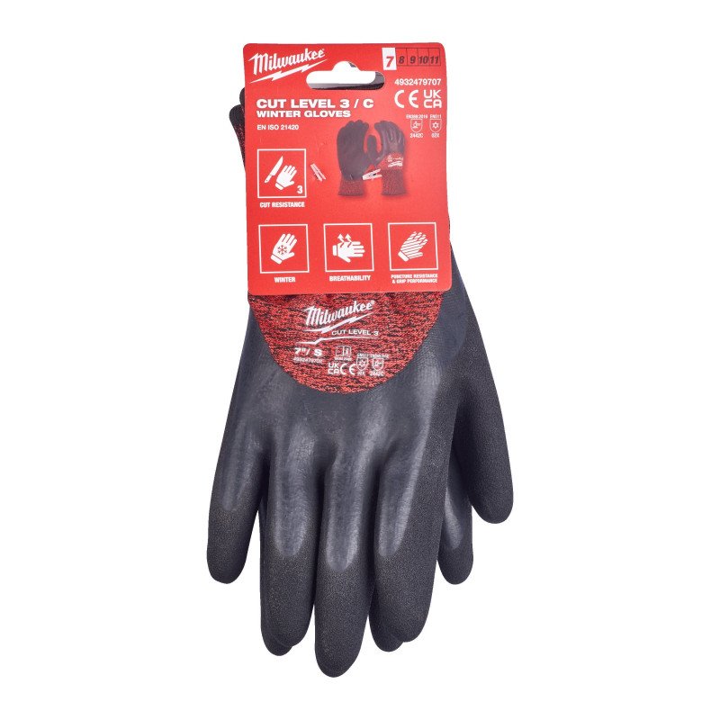 Рукавички з рівнем опору порізам 3, зимові, розмір S/7 (Багатоштучна упаковка - 12 пар) Утеплювач та подвійний акриловий шар зігрівають руку під час роботи в холодних умовах. Клас в'язання внутрішнього шару 10 і клас в'язки зовнішнього шару 13 забезпечує хорошу рухливість пальців. Покращений захист від води та холоду завдяки тому, що покриття становить ¾ від площі рукавички. Внутрішня та зовнішня підкладки об'єднані для збільшення терміну служби. Відповідають стандартам EN ISO 21420, EN388:2016 (3X43E), EN511 (01X), UKCA, ТР ТС 019/2011.