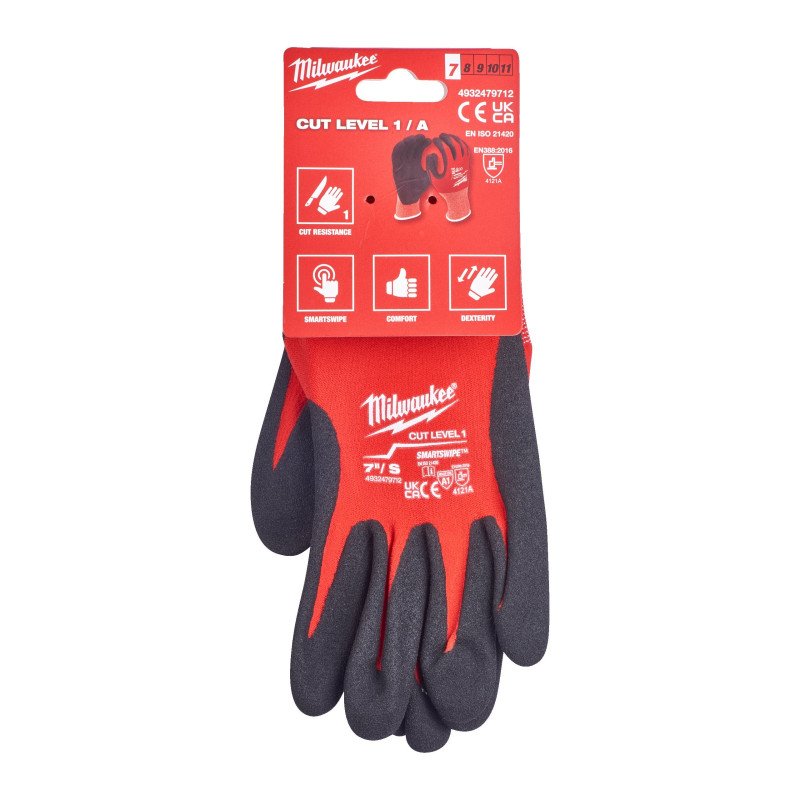 Рукавички з рівнем опору порізам 3, розмір S/7 (Багатоштучна упаковка - 144 пари) Забезпечують більший опір порізам та стирання ніж рукавички з рівнем 1, ідеальний захист при зачищенні проводів, нарізанні різьблення на трубах та при різанні. Надійний хват. Покриття нітрилом краще веде себе, ніж покриття з інших матеріалів у широкому діапазоні температур і при роботі з деталями покритими олією. Високий опір проколам під час роботи з гострими матеріалами. SMARTSWIPE™ на долонях та кінчиках пальців - дозволяють користуватися пристроями з активними екранами (смартфони, планшети), не знімаючи рукавичок. Сертифіковані в Європі за стандартами: EN ISO 21420 та EN388:2016 (4343C). Розмір S/7