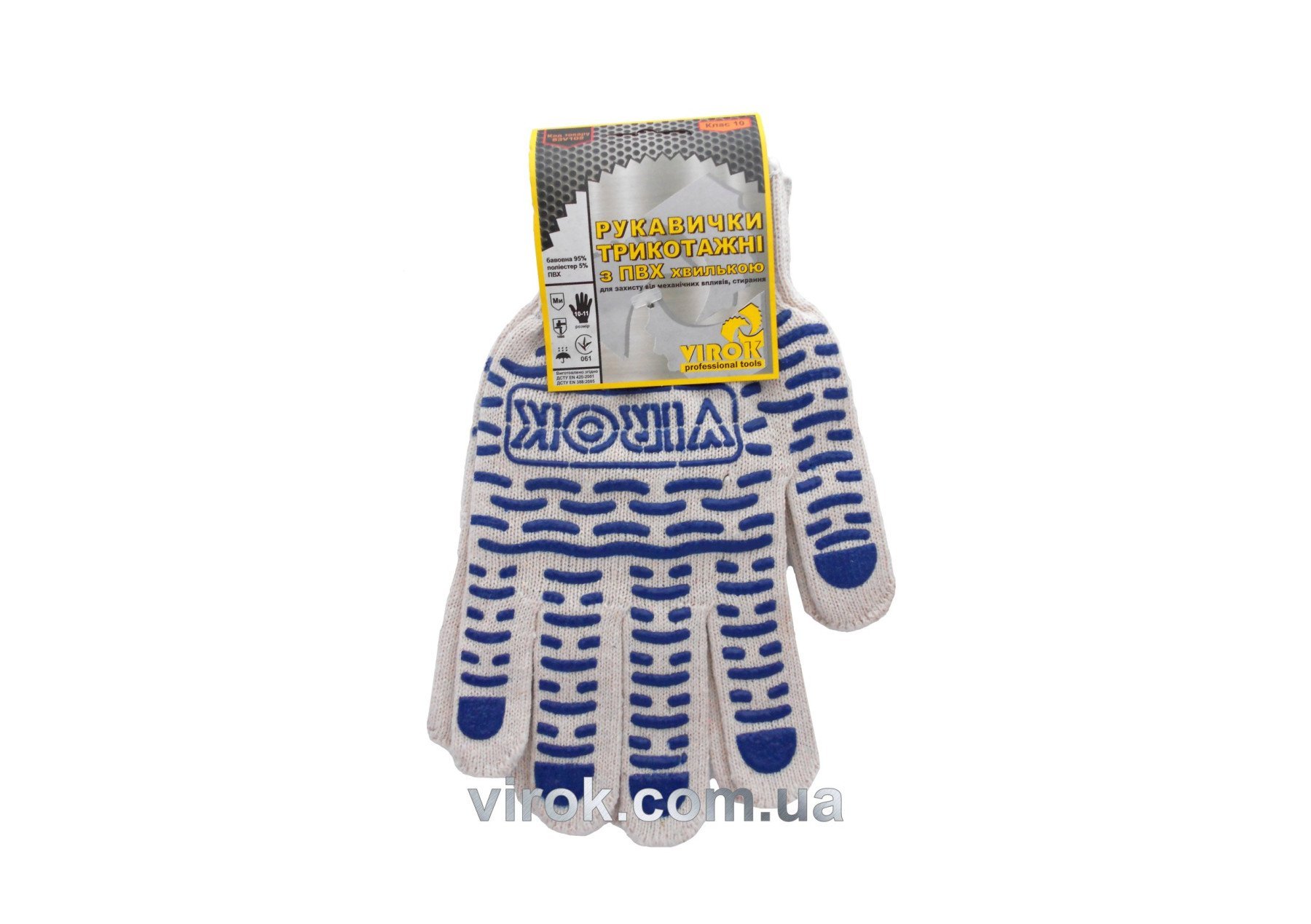 Рукавиці трикотажні білі з ПВХ хвилькою (10 клас, 95%- бавовна ,5%-поліестер) розмір 10
