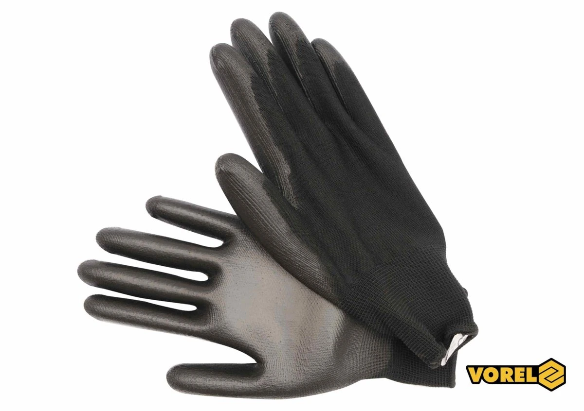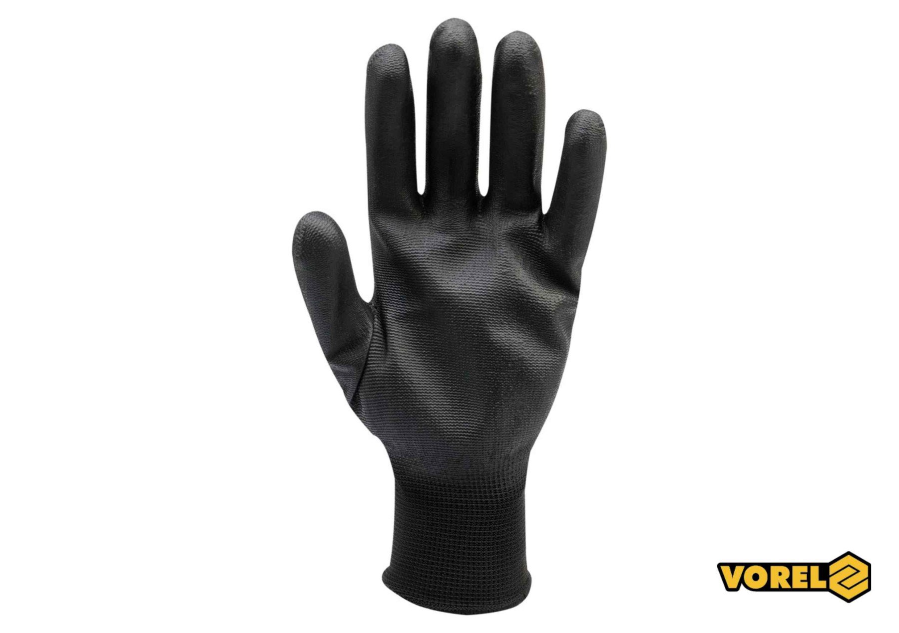 VOREL Рукавиці робочі : чорні, поліестер покритий поліуретаном, розмір 10 | 74080