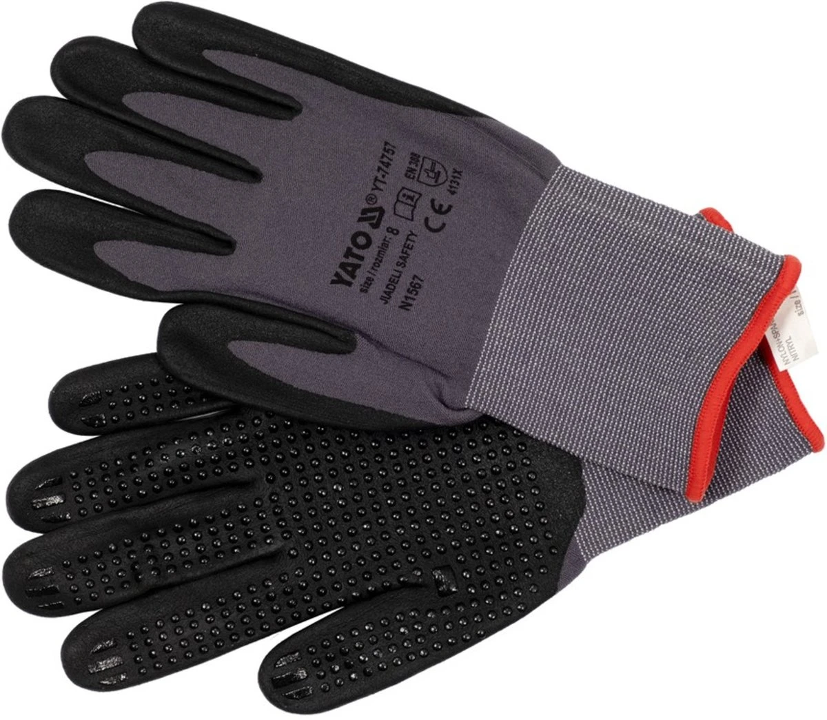YATO Рукавиці робочі нейлонові покрите спіненим нітрилом з накрапленням, розмір 8, чорнр-сірі