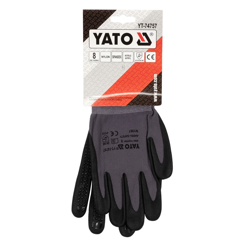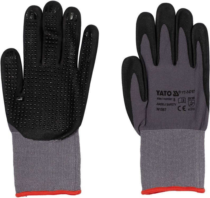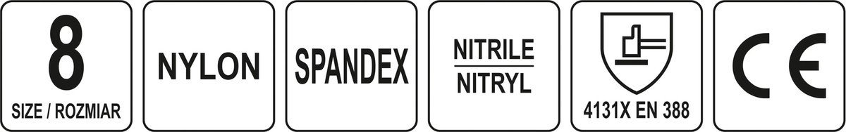 - матеріал: нейлон зі спандексом, нітрил (ручка покрита спіненим нітрилом з додатковими нітриловими точками)