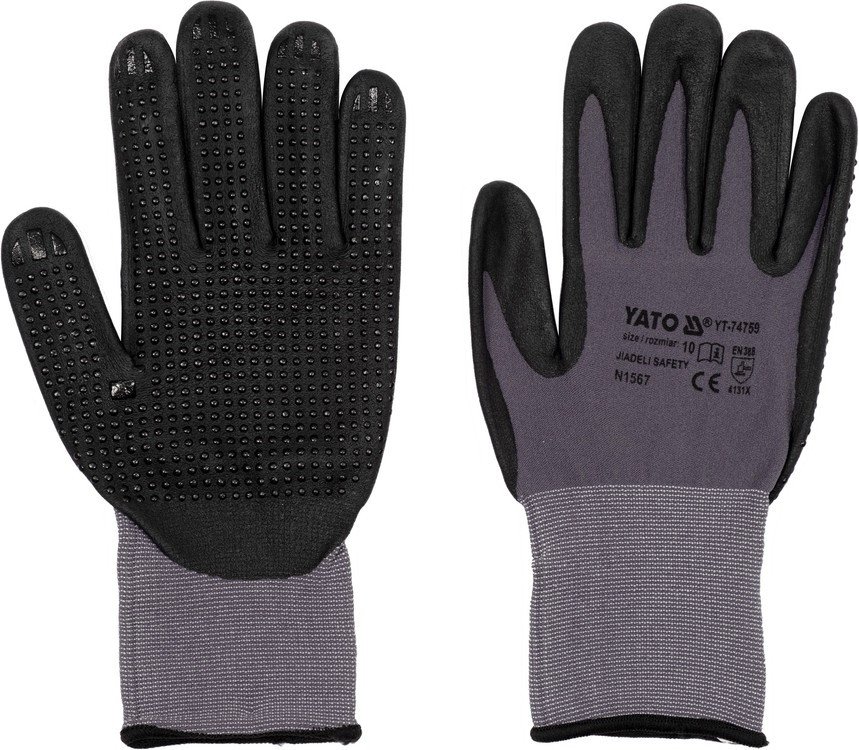 - матеріал: рукоятка: покрита спіненим нітрилом з додатковими нітриловими точками)