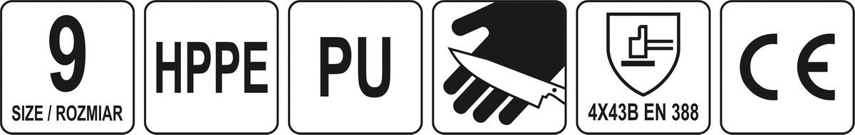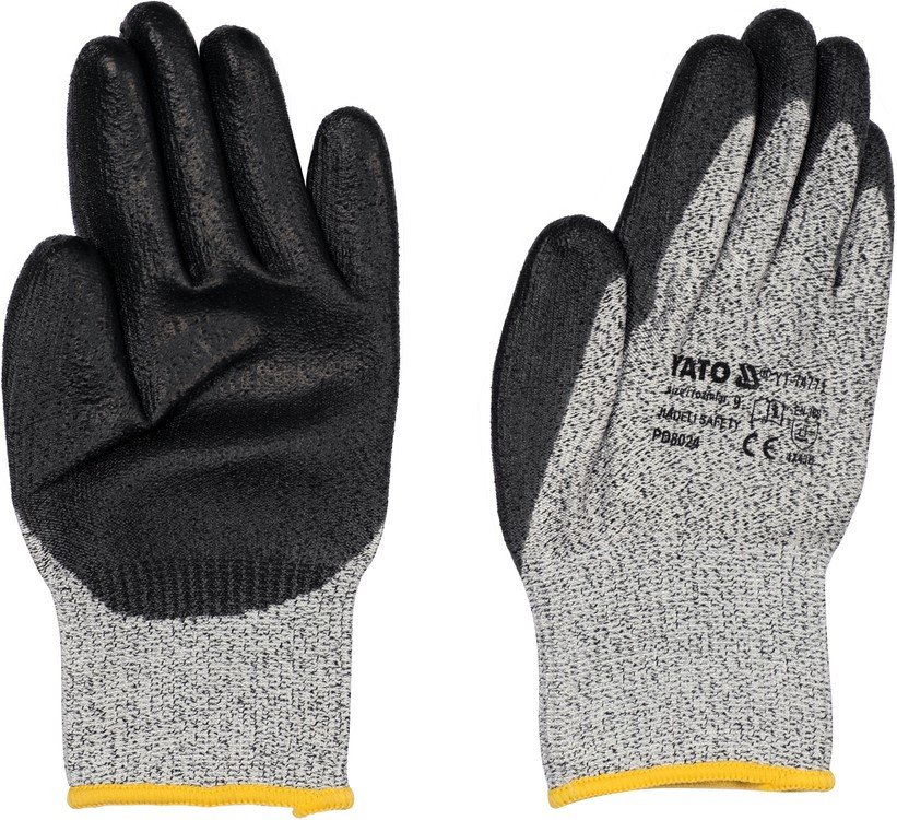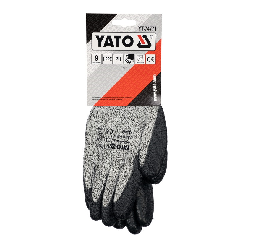 YATO Рукавиці робочі захисні від порізів (HPPE) покриті чорним поліуретаном, розмір 9
