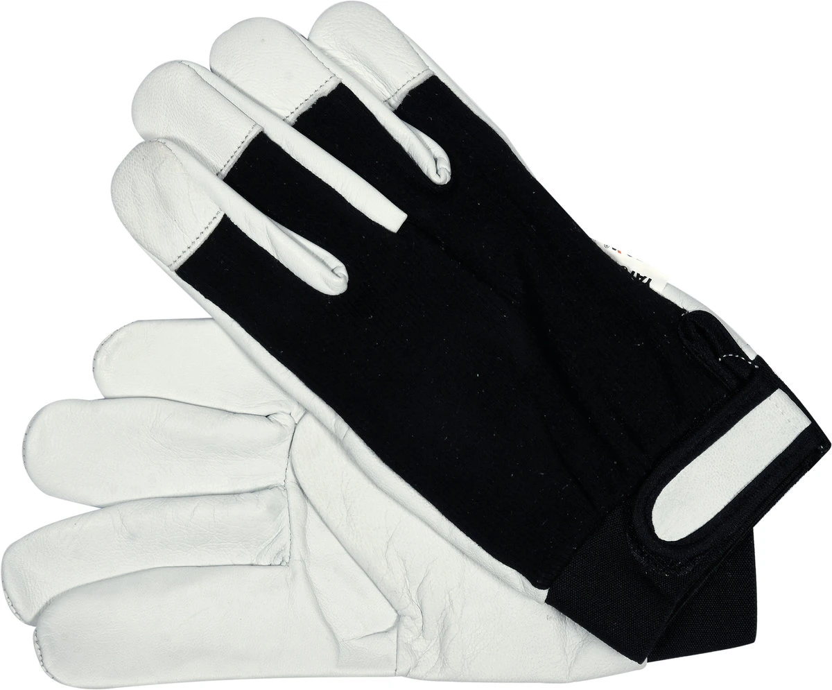 YATO Рукавиці робочі біло-чорні : бавовна + шкіра, розмір 9