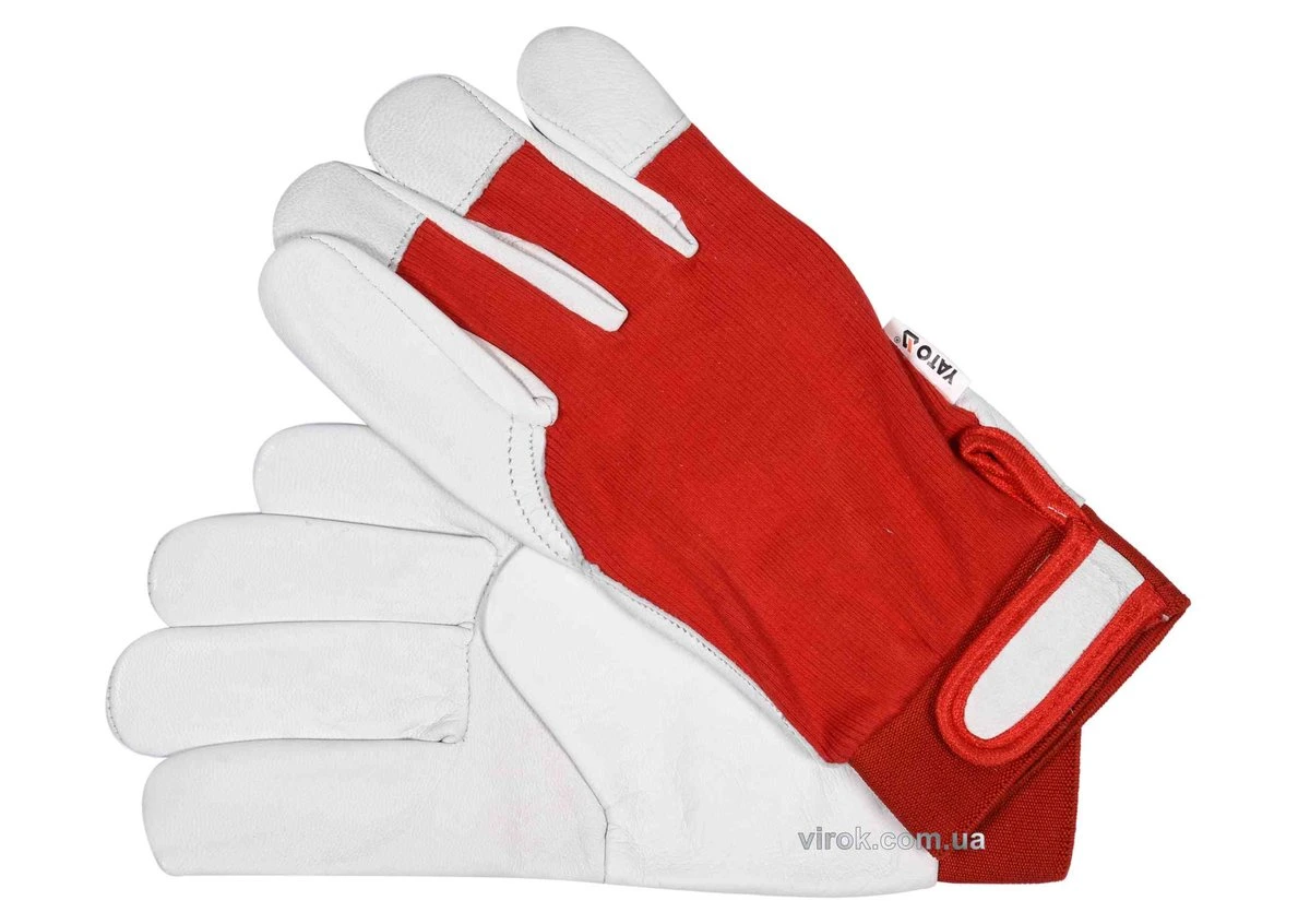 YATO Рукавиці робочі біло-червоні : бавовна + шкіра, розмір 10
