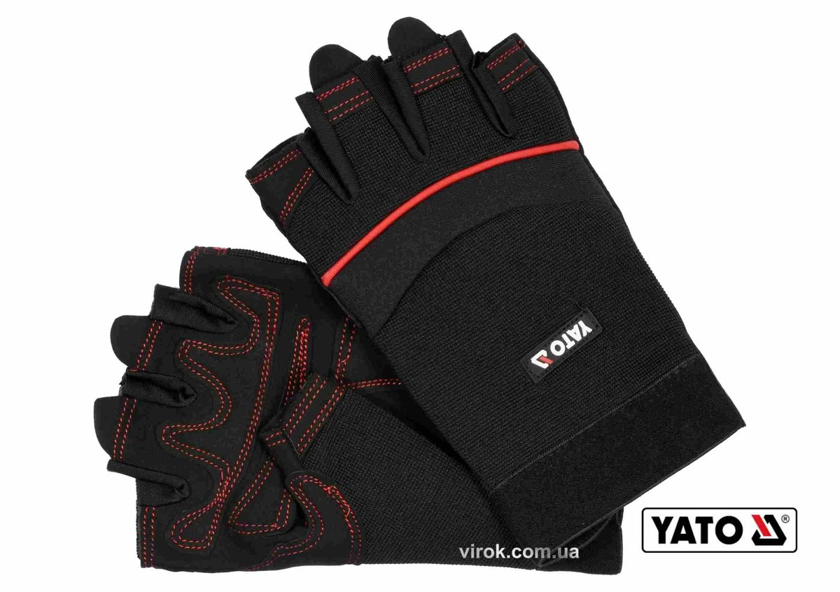 YATO Рукавиці робочі чорні з відкритими пальцями : штучна шкіра + синтетична тканина, розмір 10