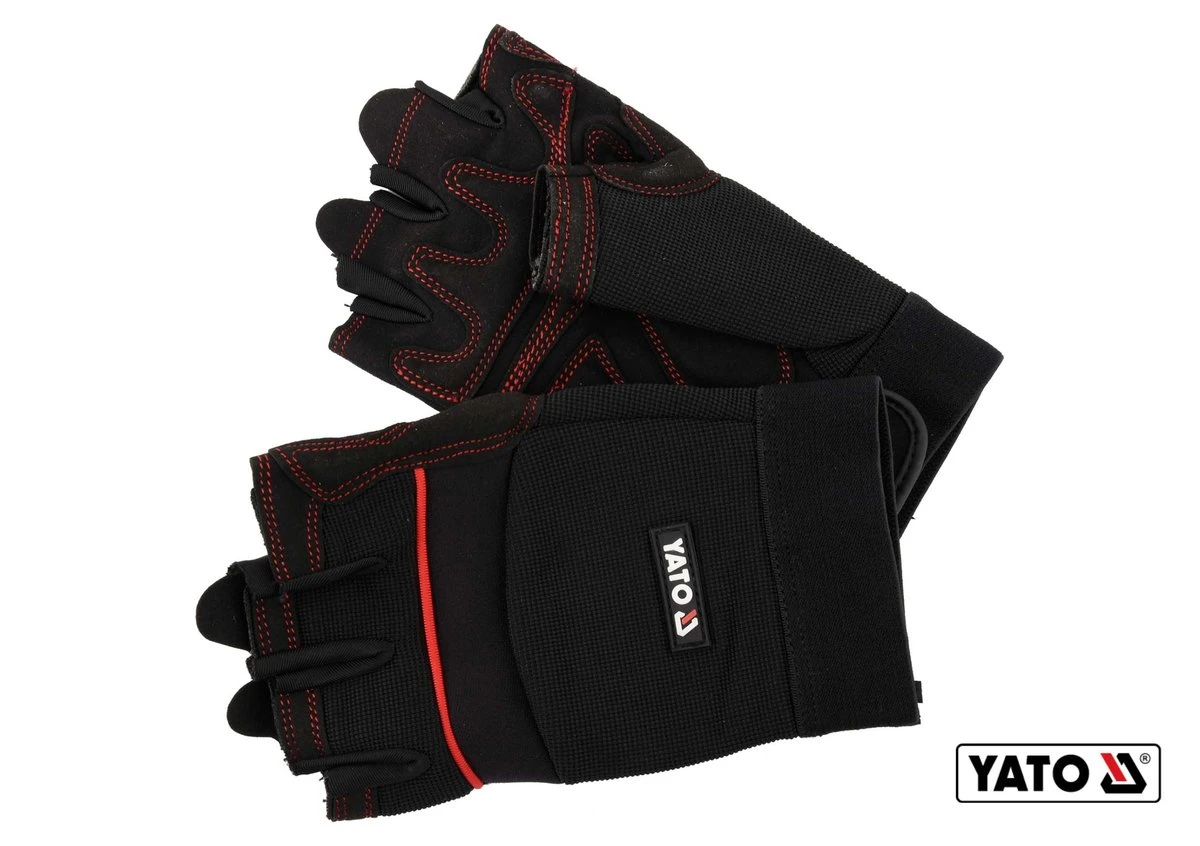 YATO Рукавиці робочі чорні з відкритими пальцями YATO: штучна шкіра +синтетична тканина, розмір 9 | YT-74659