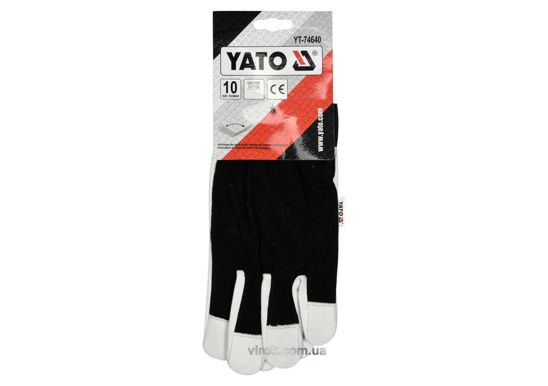YATO Рукавиці робочі біло-чорні YATO : бавовна + шкіра, розмір 10 | YT-74640