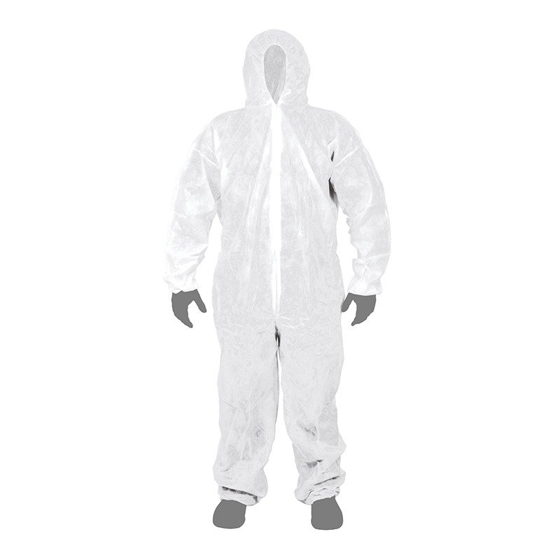 Комбінезон захисний, одноразовий, розмір L. Може використовуватись під час операцій, пов'язаних з малярними, оздоблювальними роботами, а також при використанні агресивних та шкідливих речовин, наприклад, при обробці рослин отрутохімікатами. Виготовлений з поліпропілену, із пластиковою застібкою, легкий, не заважає рухам, також має додаткові гумові вставки для бепечної та комфортної роботи.
