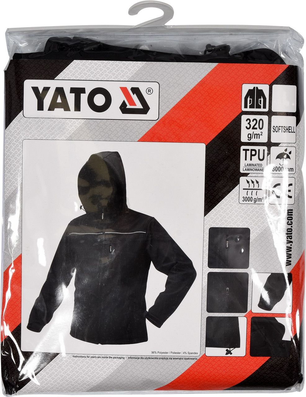 YATO Куртка робоча SOFTSHELL з прикріп капюшоном розм XXXL, чорна, 3 кишені, 96% поліест і 4% спанде