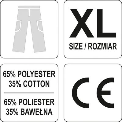 Рабочие брюки соответствуют требованиям Регламента (ЕС) 2016/425 для рабочей одежды категории I. Спецодежда 1 категории защищает пользователя от различных факторов с минимальным риском. Спецодежда YATO защитит личную одежду от повреждений и грязи, многочисленные карманы облегчат выполнение всех видов работ, а вшитая арматура, вентиляция и качественные материалы позволят комфортно работать долгое время.
