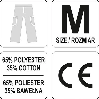 Рабочие брюки соответствуют требованиям Регламента (ЕС) 2016/425 для рабочей одежды категории I. Спецодежда 1 категории защищает пользователя от различных факторов с минимальным риском. Спецодежда YATO защитит личную одежду от повреждений и грязи, многочисленные карманы облегчат выполнение всех видов работ, а вшитая арматура, вентиляция и качественные материалы позволят комфортно работать долгое время.