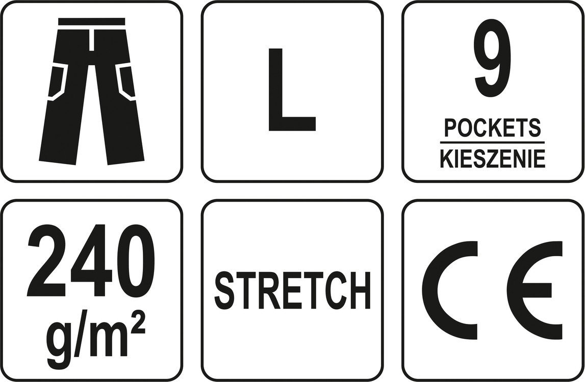 YATO Штани робочі чорні, розмір L; 9 киш 64%- поліестер, 34%- бавовна, 2%-еластан, відсвічув вставки