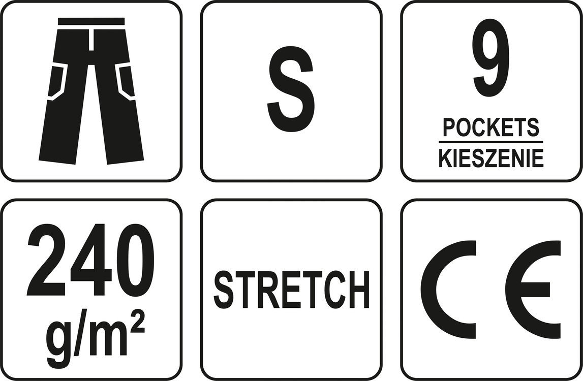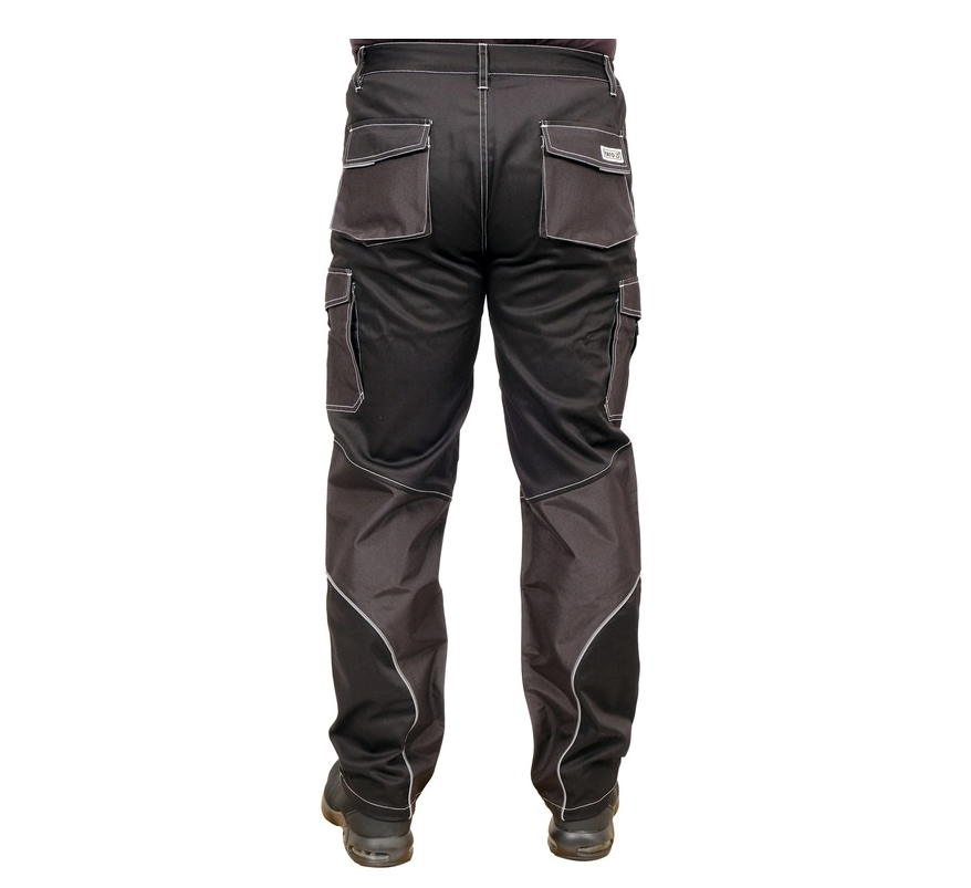 YATO Штани робочі чорні, розмір S; 9 киш 64%- поліестер, 34%- бавовна, 2%-еластан, відсвічув вставки