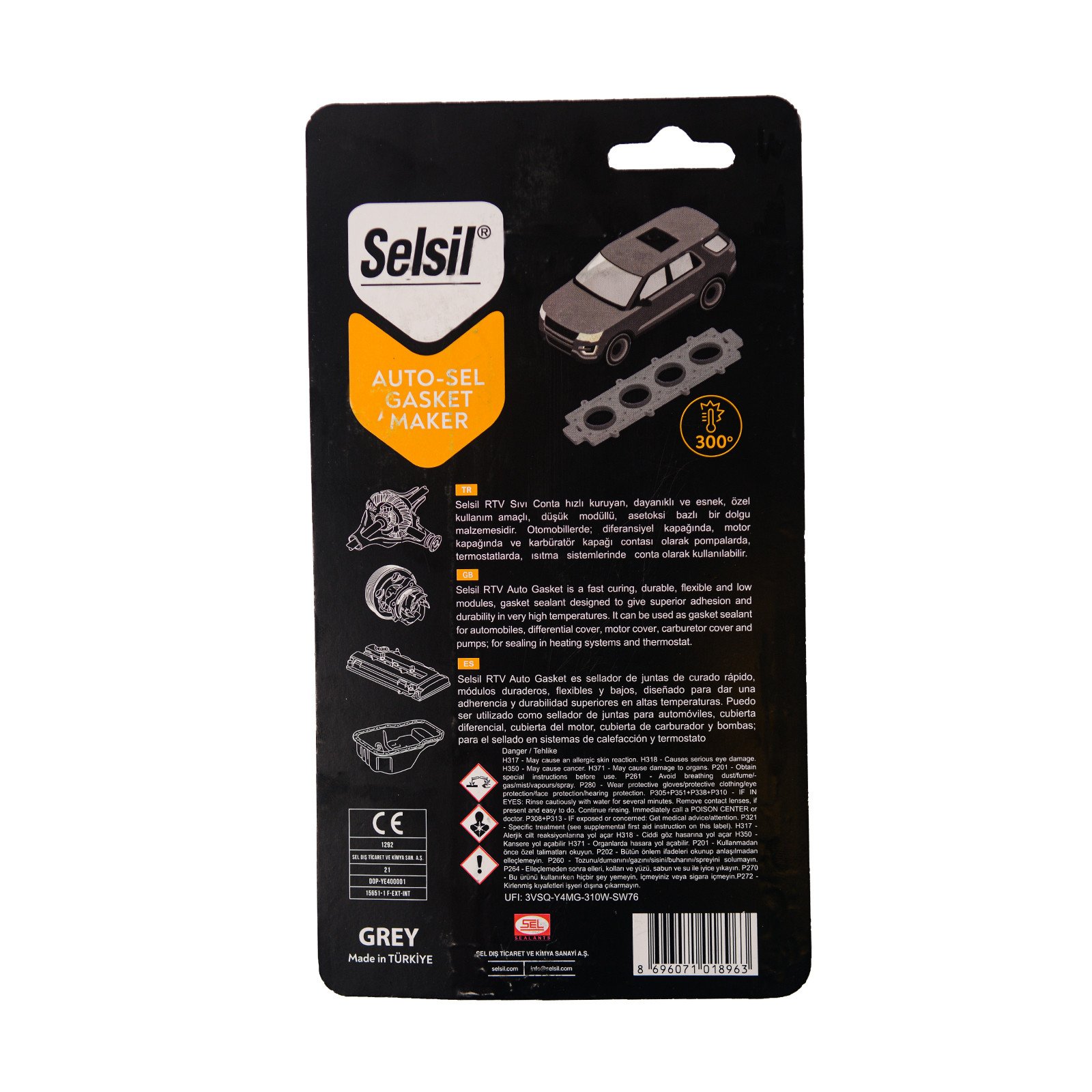 Рідкий герметик Selsil Auto-Sel RTV – це швидковисихаючий, гнучкий, спеціалізований, низькомодульний, стійкий до високих температур 300 С' силіконовий герметик.
