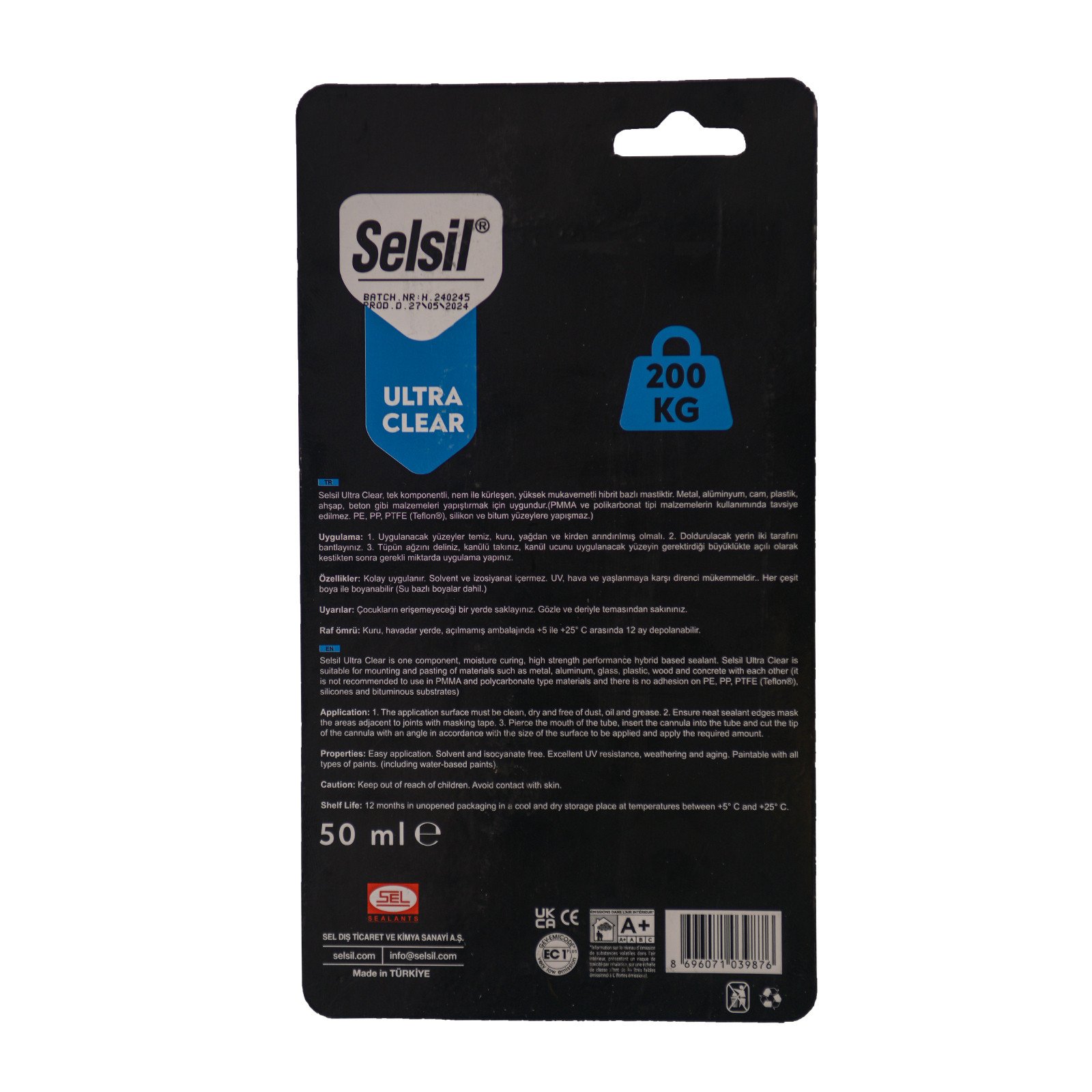 Він підходить для склеювання таких матеріалів, як скло, метал, алюміній, дерево та бетон, і може використовуватися на вологих та мокрих поверхнях.Selsil Ultra Clear - підходить для складання та склеювання металу, алюмінію, скла, пластику, дерева та бетону.
