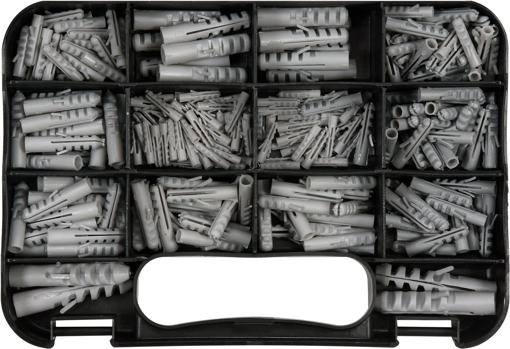 - PE дюбеля: 4 х 20 мм (80 шт.), 5 х 25 мм (50 шт.), 6 х 30 мм (60 шт.), 7 х 35 мм (30 шт.), 8 х 40 мм (30 шт. .), 10 х 45 мм (12 шт.), 12 х 60 мм (4 шт.)