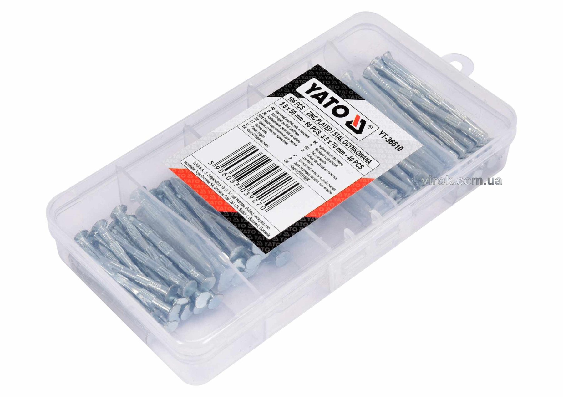 YATO Цвяхи оцинковані до бетону : 3.5 х 50 мм, 3.5 х 70 мм, 106 шт. (DW)