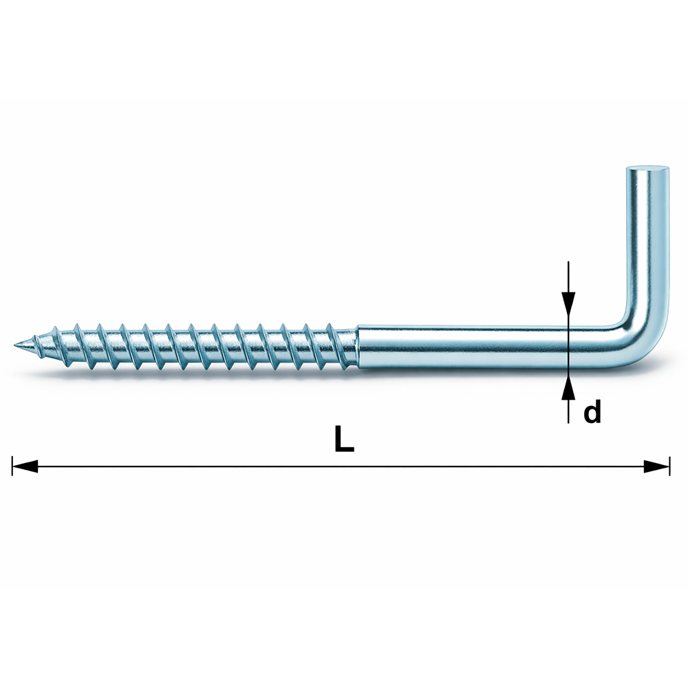 Шуруп-крюк L широко використовується у будівництві, монтажних та господарських роботах. Підходить для кріплення мотузок, тросів, декоративних елементів, світильників, підвісних кашпо, інструментів, гойдалок та інших конструкцій до дерев'яних основ.