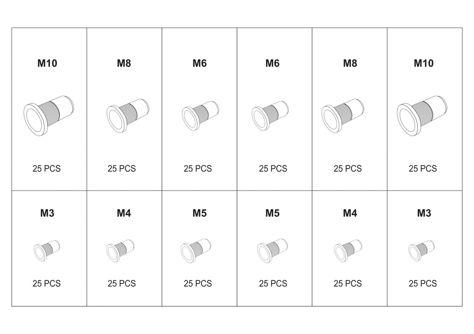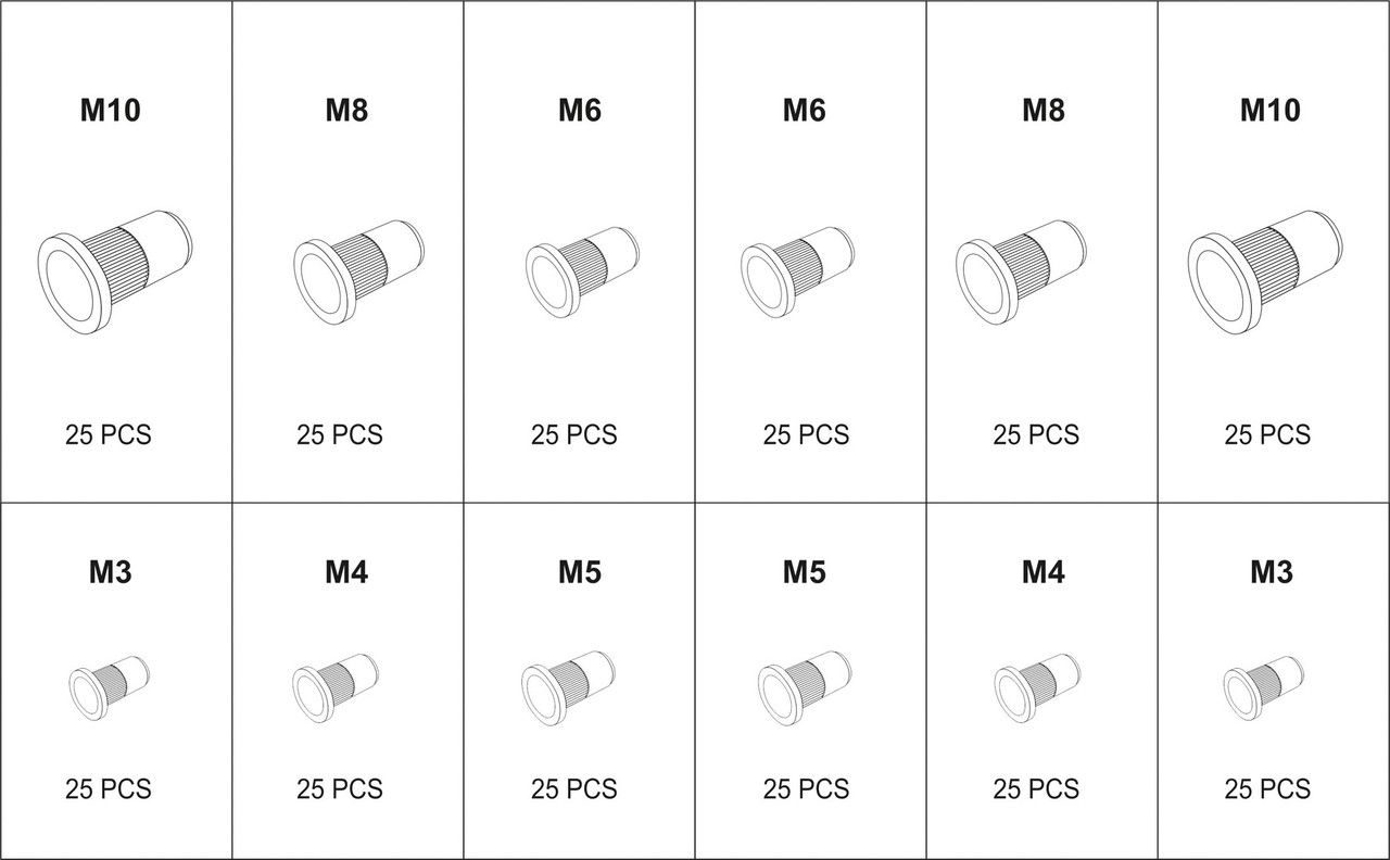 YATO Гайки заклепки стальные и алюминиевые М3-М10 ММ 300 ШТ