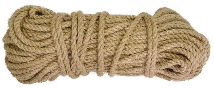 Канат джутовый вит. Характеризуется высокой прочностью и износостойкостью. Канат устойчив к солнечному воздействию, быстро высыхает, не накапливает статическое электричество, экологически безопасен и не вредит здоровью человека. Применяется на строительстве, на транспорте, а также для декора интерьера. Канат хорошо клеится к деревянным и другим поверхностям. С его помощью можно оформить лестницы, беседки, срубы бань из бревна и т.д. Он надежно закрывает межвенцовый утеплитель от птиц. Благодаря джутовому каната значительно повышается уровень звукоизоляции дома.