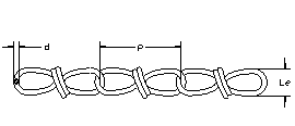 (d)p Le Масса/m. Рабочая нагрузка. Weight/m. Working load [mm] [mm] [kg] [kg] 1,4 mm 21 6.5 0.042 15 1,6 mm 23 7 0.047 20 1,8 mm 27 8 0.067 30 2,0 mm 28 9 0.080 40 2,2 mm 31 10 0.102 50 2,5 mm 35 11 0.123 70 2,8 mm 39 12.5 0.153 90 3,0 mm 41 14 0.208 120 3,4 mm 44 15.5 0.233 140 3,8 mm 46 17 0.316 160 4,2 mm 52 19 0.354 170 4,6 mm 51 20.5 0.434 180 5,0 mm 61 22.5 0.571 190 Материал / MATERIALC10 Покрытие / COVERING