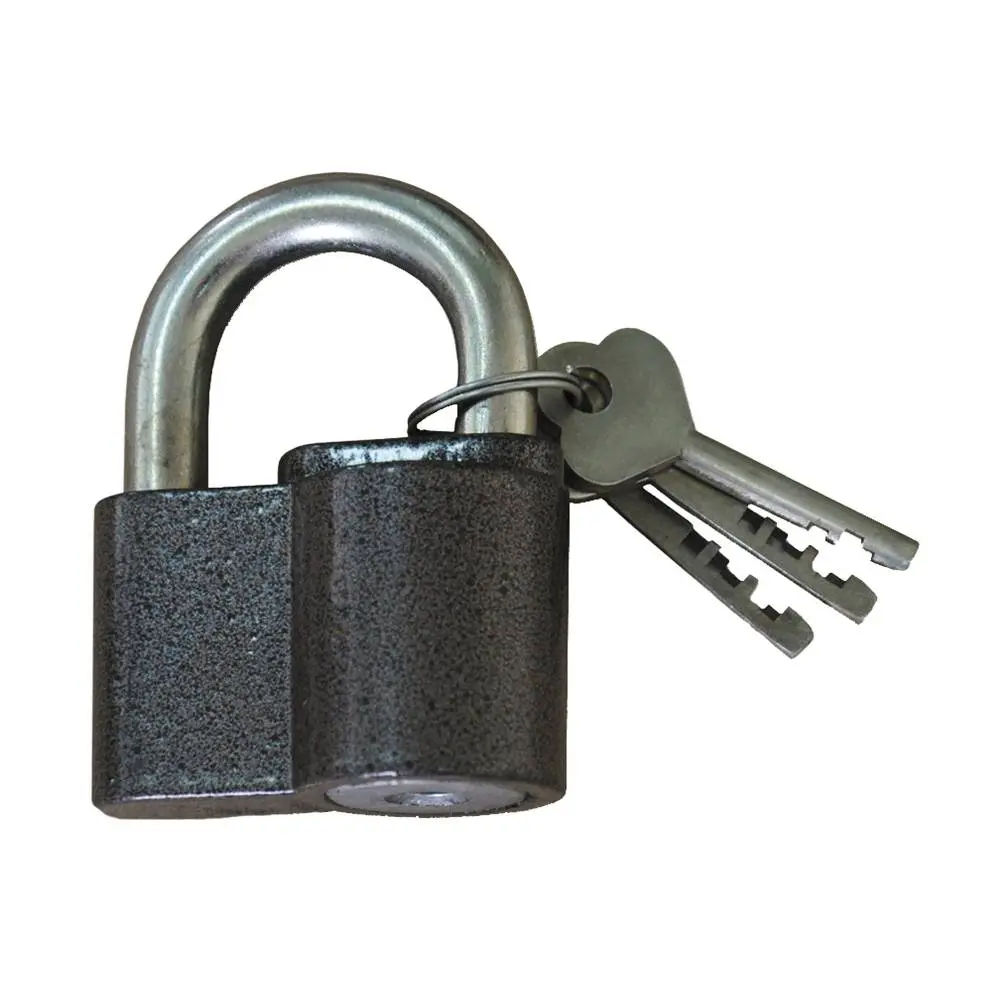 Замок виготовлений методом лиття з алюмінієвого сплаву, обладнаний дисковим металевим механізмом. Пристрій замка дозволяє досягти високого ступеню захисту від злому за допомогою відмички або інших пристроїв. Замок дисковий не має пінів і пружин, що робить його механізм стійким до перепадів температур, проникненню бруду, вологи і пилу, тому такі замки відмінно підходять для вуличних хвірток, воріт гаражів та складських приміщень. Має набагато більшу область застосування, ніж стаціонарні дверні замки. Конструкція замку забезпечує надійну роботу навіть при низьких температурах. Розміри 77х56х32 мм, вага 0,21 кг. Дана модель комплектується трьома ключами.