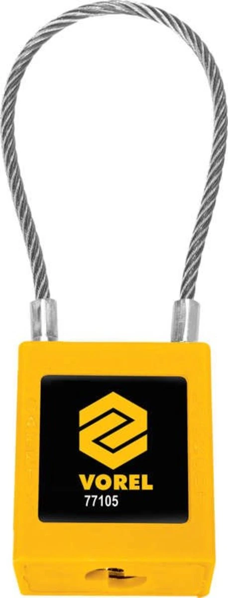 VOREL Замок навісний з тросов. дугою Ø= 3,2мм, l= 175мм, 2 ключі, корпус покрит нейлоном- 40х20х45мм | 77105