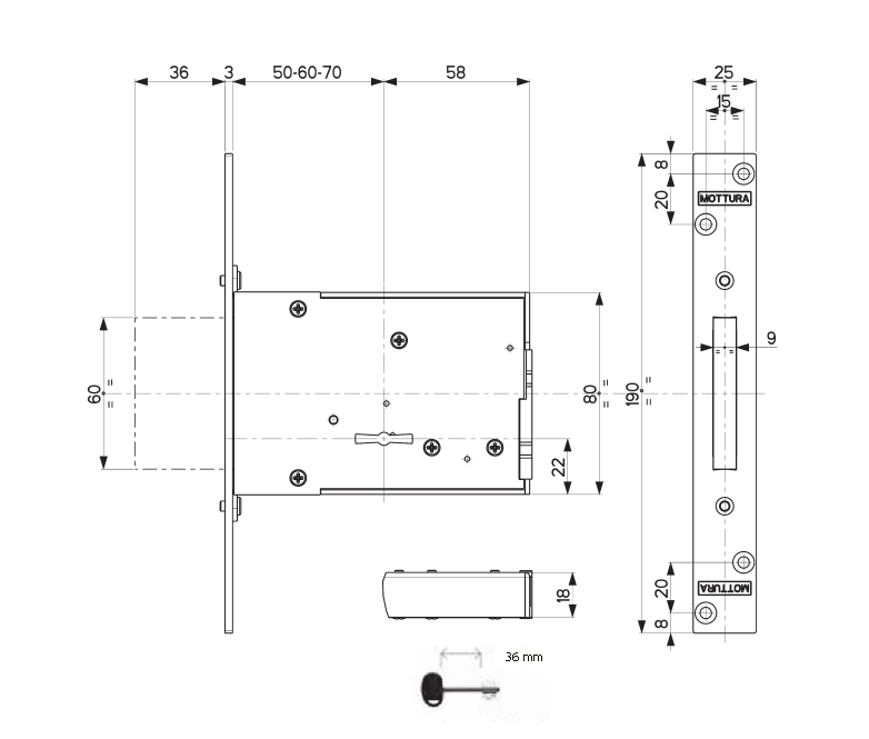 Mottura (Моттура) 40.701.60 Замок врезной сувальдный для металлических, деревянных и пластиковых дверей.